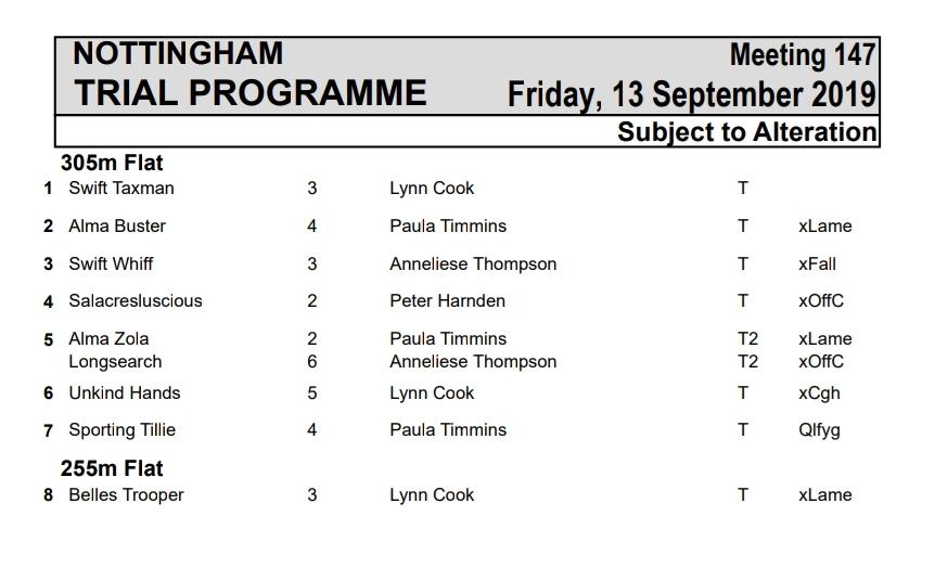 Nottingham Dogs On Twitter Advanced Trial Card For Friday 13th September